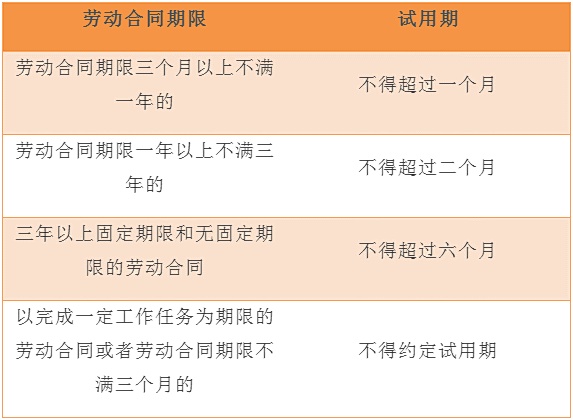 《劳动合同法》对试用期的期限设定了上限标准: