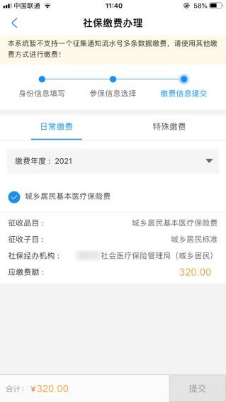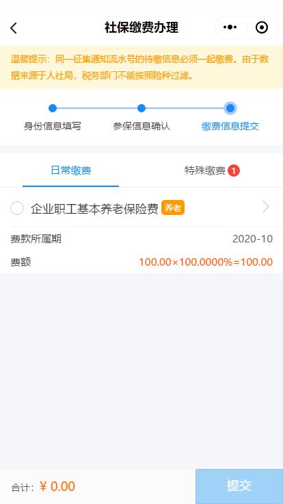 也可选择缴费人的特殊缴费信息,提交并缴费: