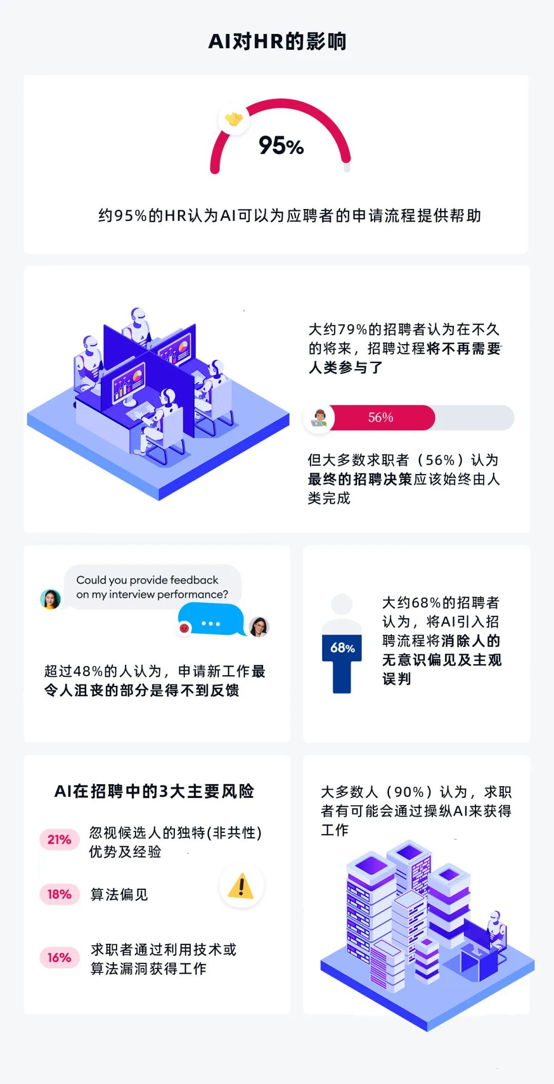 1.约77%的HR相信,很快人们将完全不需要参与招聘过程。