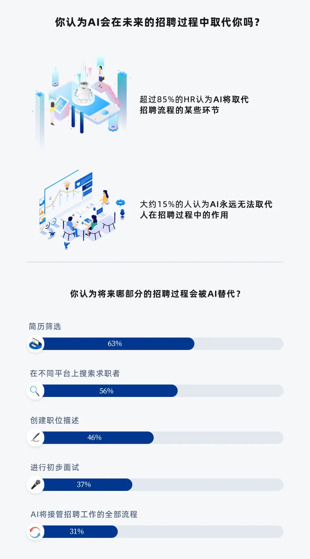 2.约85%的HR认为,在未来,AI将取代招聘流程的某些环节。