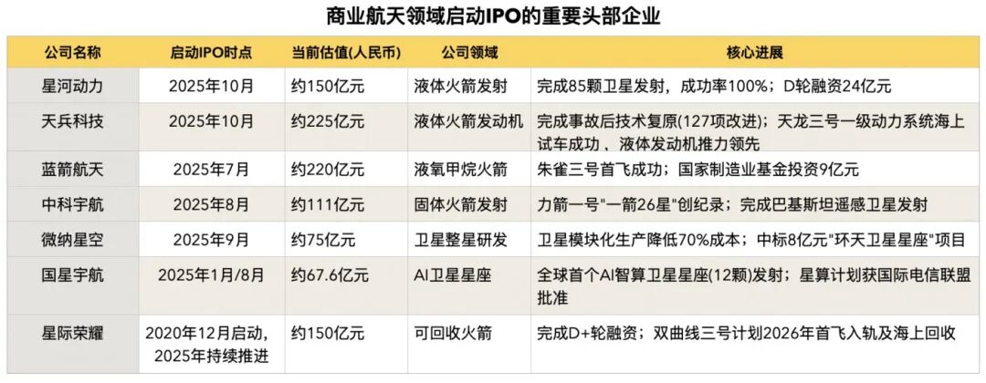 受益于政策精准扶持,2025年,火箭、卫星领域头部企业蓝箭航天、天兵科技、星河动力航天等密集申报IPO,加速上市进程。