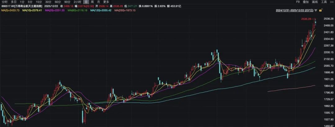 这一年,从中央到地方,商业航天迎来堪称“核弹”级的全链条政策护航,业内人直呼“拐点已至”“新纪元开启”;在酒泉卫星发射中心的商业航天专属“特区”——东风商业航天创新试验区,“民营队”代表型号朱雀三号火箭和“国家队”的长征十二号甲火箭相继呼啸升空,率先在中国可回收火箭技术的攻坚路上,迈出虽败犹荣的关键一步;同频共振的资本市场经历前所未有的躁动,资本不再克制,个股飙涨、脉冲式行情轮番上演,商业航天指数跻身全年最具爆发力的主题指数行列。