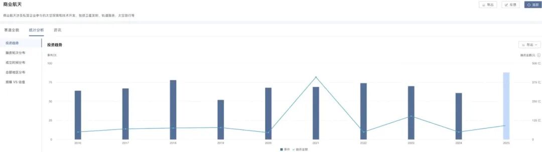 投融资方面也明显活跃,IT桔子数据显示,截至2025年11月26日,国内商业航天领域共发生投融资事件60起,金额共计97.64亿元,活跃度远超2024年的34起(金额140.21亿元)。