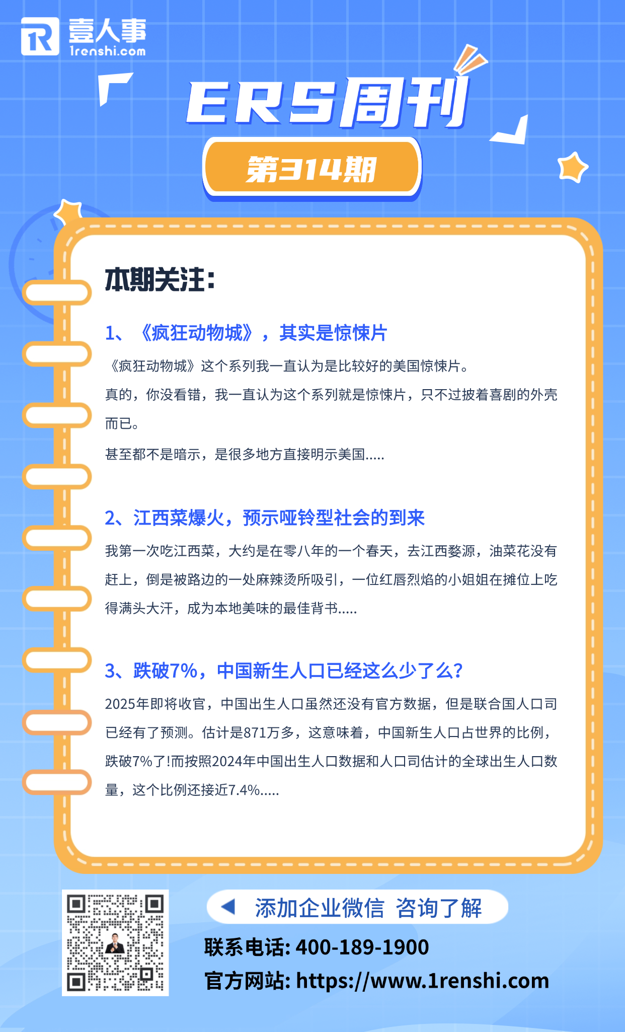 【壹人事周刊】314期:《疯狂动物城》,其实是惊悚片;跌破7%,中国新生人口已经这么少了么?;江西菜爆火,预示哑铃型社会的到来.....