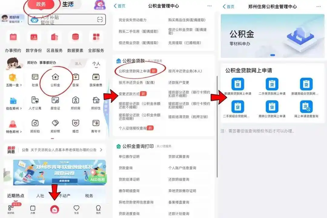 郑州住房公积金个人住房贷款日前开通网上申请渠道,采用“网上申请、线下预审、预约签字”模式,贷款职工只需在“郑好办”APP提出贷款申请,完成身份核验、提交购房信息,公积金中心受理后预先完成预审、信息录入等环节,贷款职工根据进度查询提示的办理时间,到所选的办事大厅办理借款手续即可,大大缩短了业务办理的等待时间。