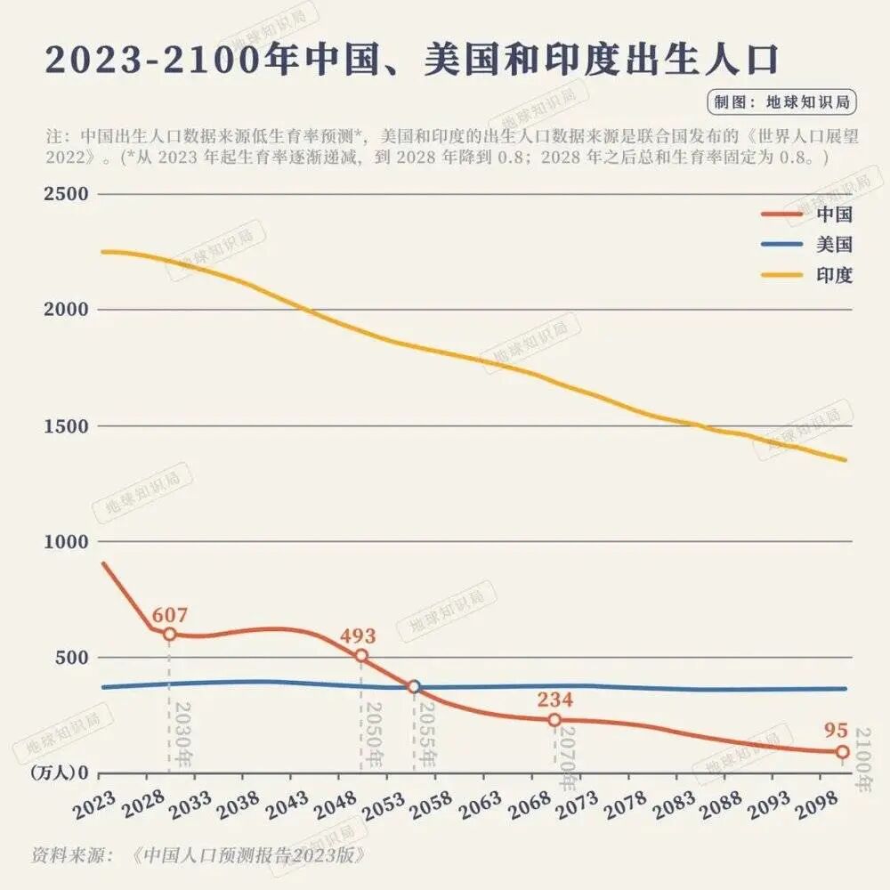 2016年到2023年,短短7年间,新出生人口已经从将近2000万降到了902万,缩水一半还多。联合国曾经的预测,成为了笑话。