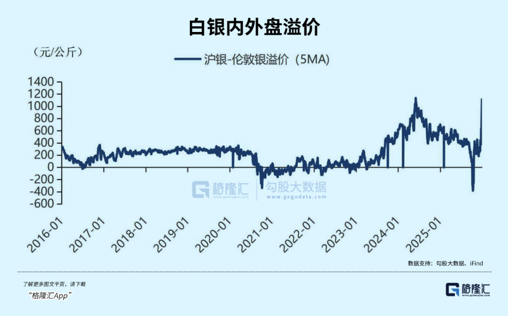 比如国内的深圳水贝市场,在12月底银价突破80美元时,实物白银交易柜台前排起长队,散户囤积热情助推国内白银价格较伦敦现货溢价超12美元/盎司。