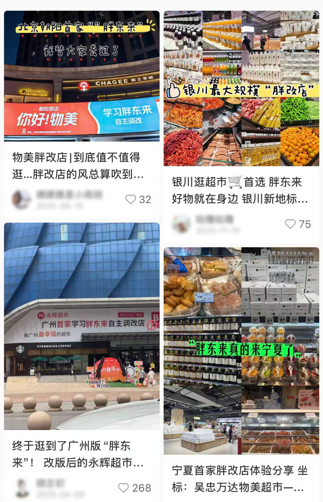 社交平台上,“胖改店”迅速成了标签。探店视频接连出现,有人感叹“终于像个新超市了”“比以前高级很多”。