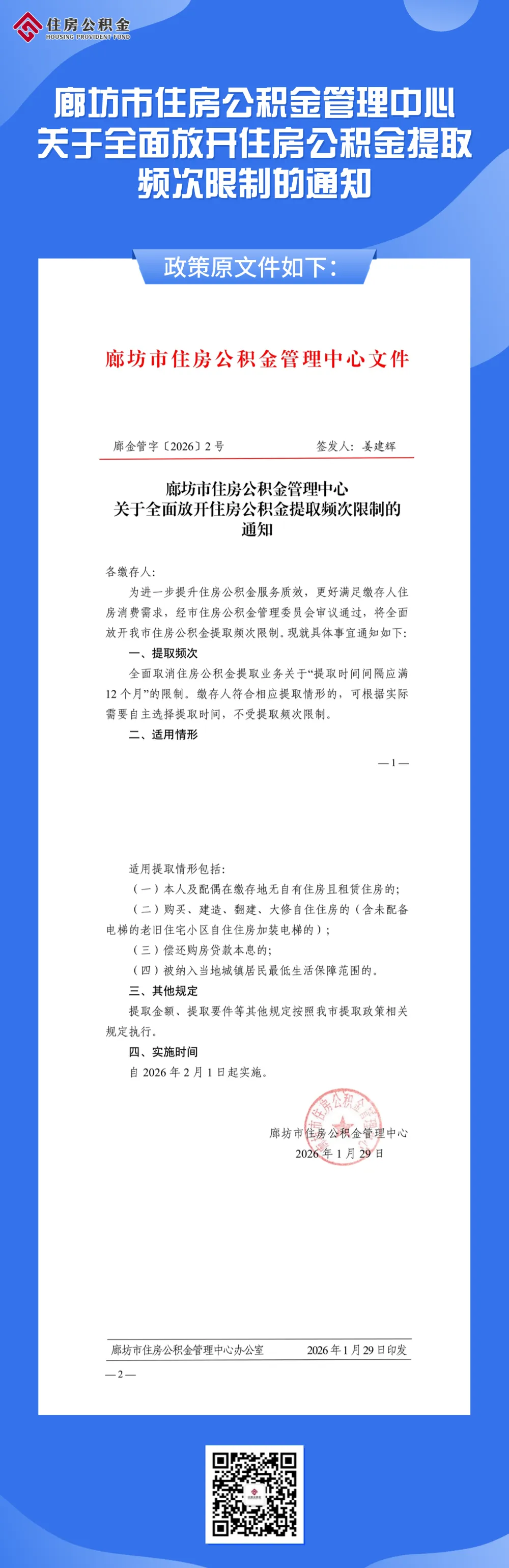 廊坊市关于全面放开住房公积金提取频次限制的通知