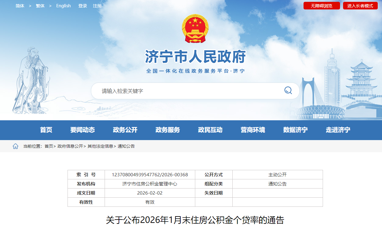 2月9日,记者从济宁市人民政府官网了解到,截至2026年1月31日,济宁市住房公积金委托贷款余额316.91亿元,住房公积金缴存余额482.33亿元,个贷率为65.70%。