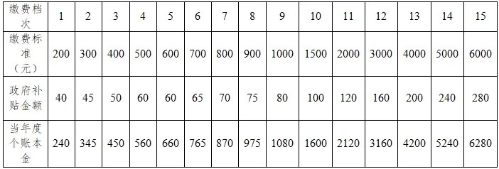 具体到眉山,可以看到参保缴费档次有弹性。采用按年缴费,当前共有15个缴费档次,最低为200元/年,最高为6000元/年,参保人可以选择与自身经济条件相适应的档次参保缴费。另外,缴费档次越高补贴越多。当年度正常缴费可以享受政府缴费补贴,政府缴费补贴从40元到280元,共有14个缴费补贴标准,缴得高补贴就高,个人缴费、政府缴费补贴全部计入个人账户,鼓励多缴多得。补缴中断年度的缴费不可以享受缴费补贴。