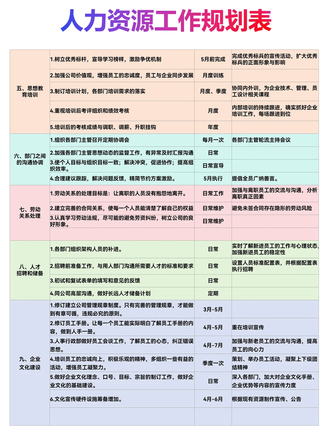 别慌!分享一份私藏的HR年度规划模板!