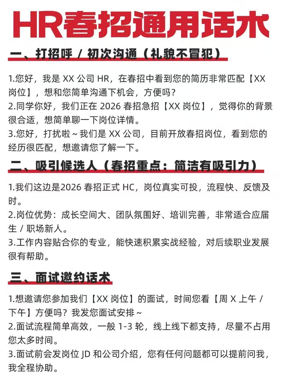 HR宝子们春招沟通没思路?这份通用话术直接用!📝