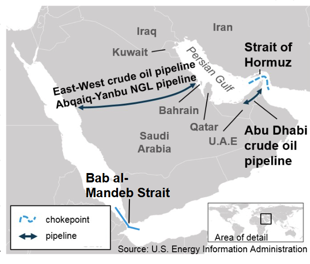 也不是完全没有,沙特的“东西输油管道”,东起波斯湾边的阿布盖格,向西横穿沙特到达红海边的延布,石油可以在延布装船进入红海。这条管道总运力约500万-700万桶/日,但空余运力只有200万至400万桶/日。