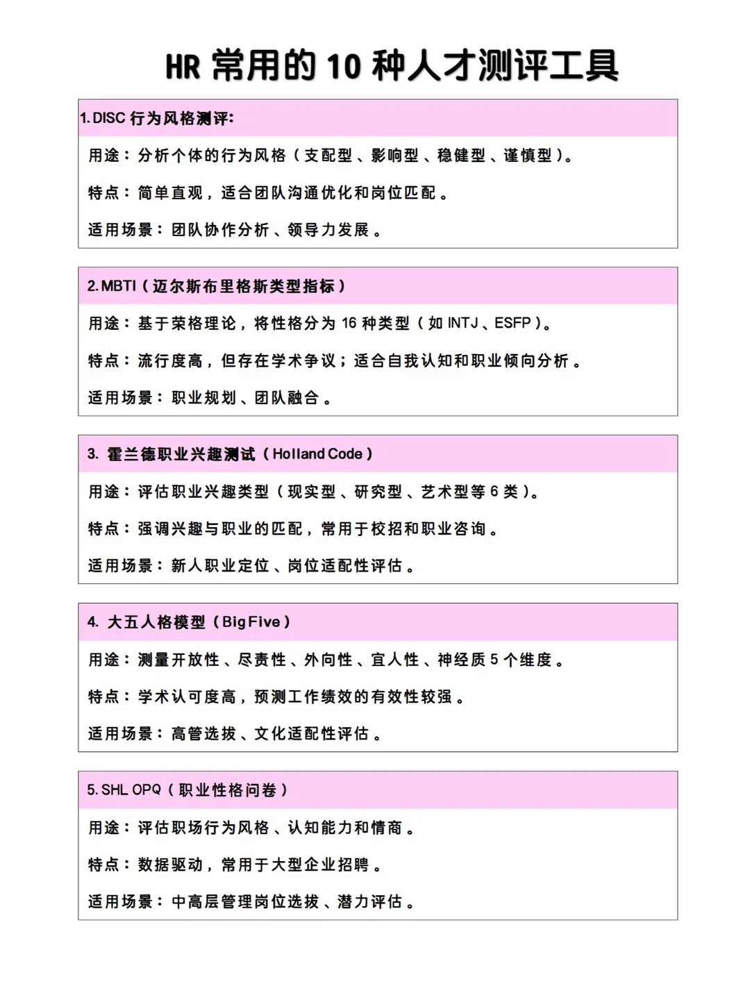 ➡招聘筛选:SHL OPQ、Saville Wave、大五人格。