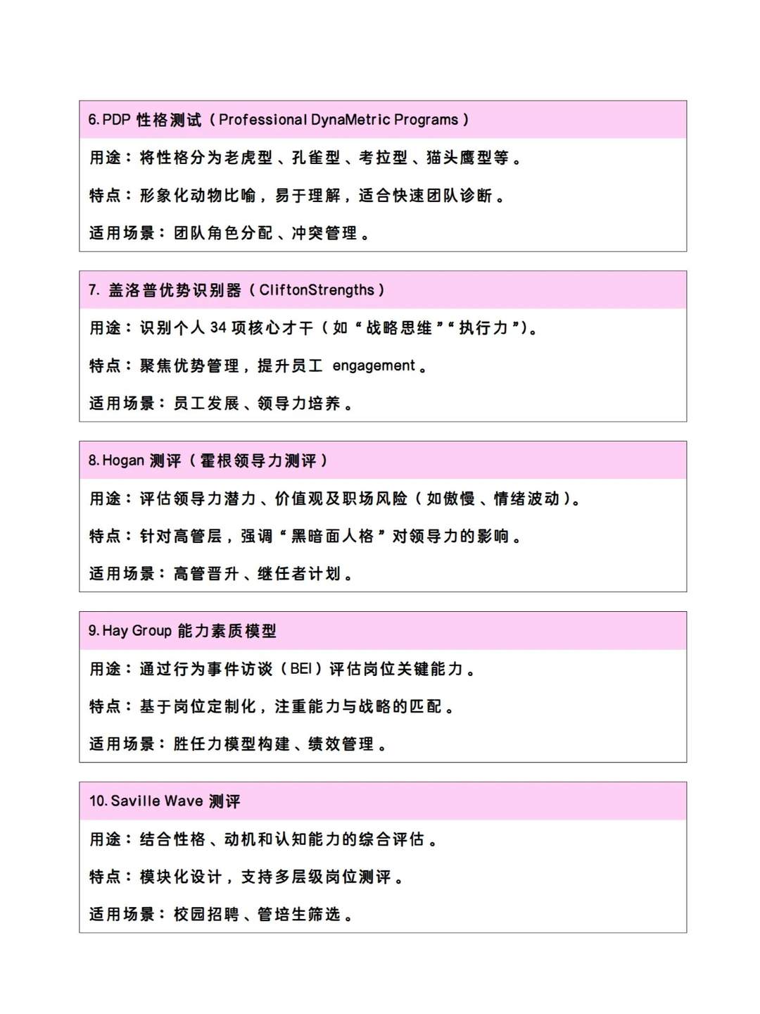 ➡ 领导力发展:Hogan、盖洛普优势识别器。
