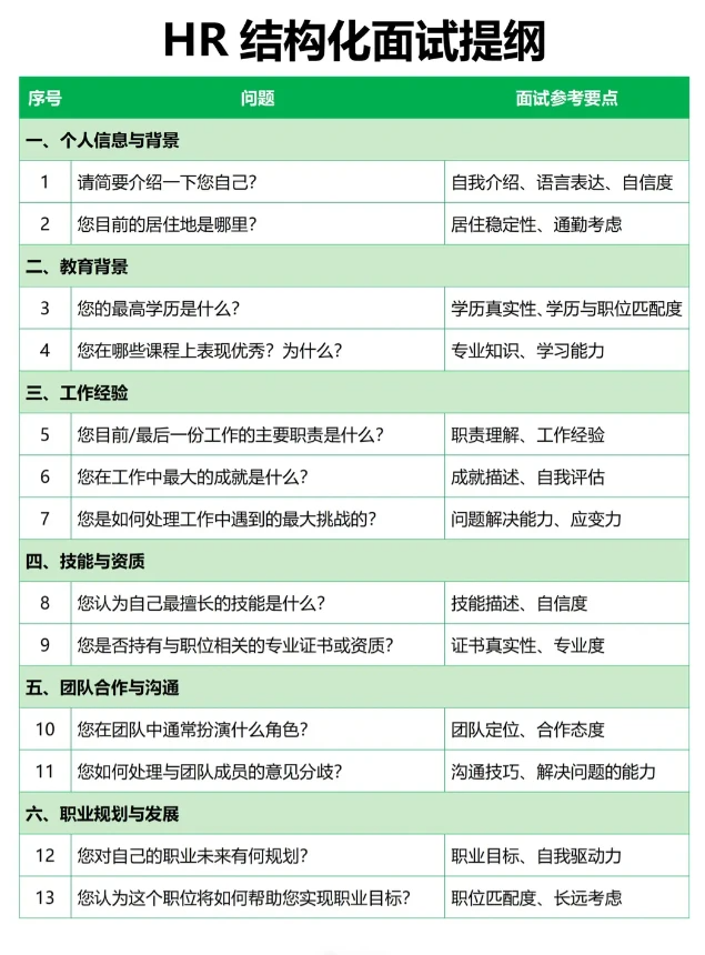 HR面试神器|结构化提纲