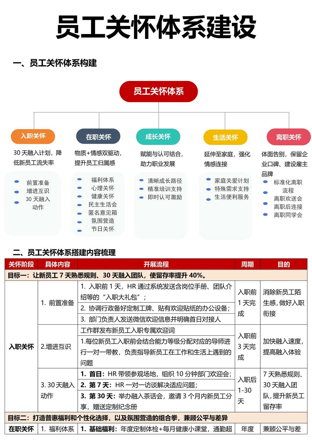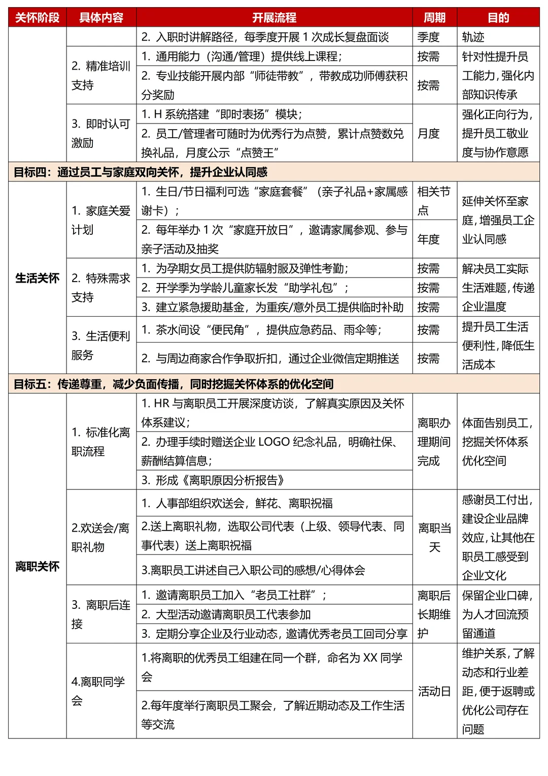一份优秀的员工关怀体系需要从各维度着手建立,今天整理了以下几个版块及具体内容,详细全面,大家可参考落地实施,直接就能行动啦!