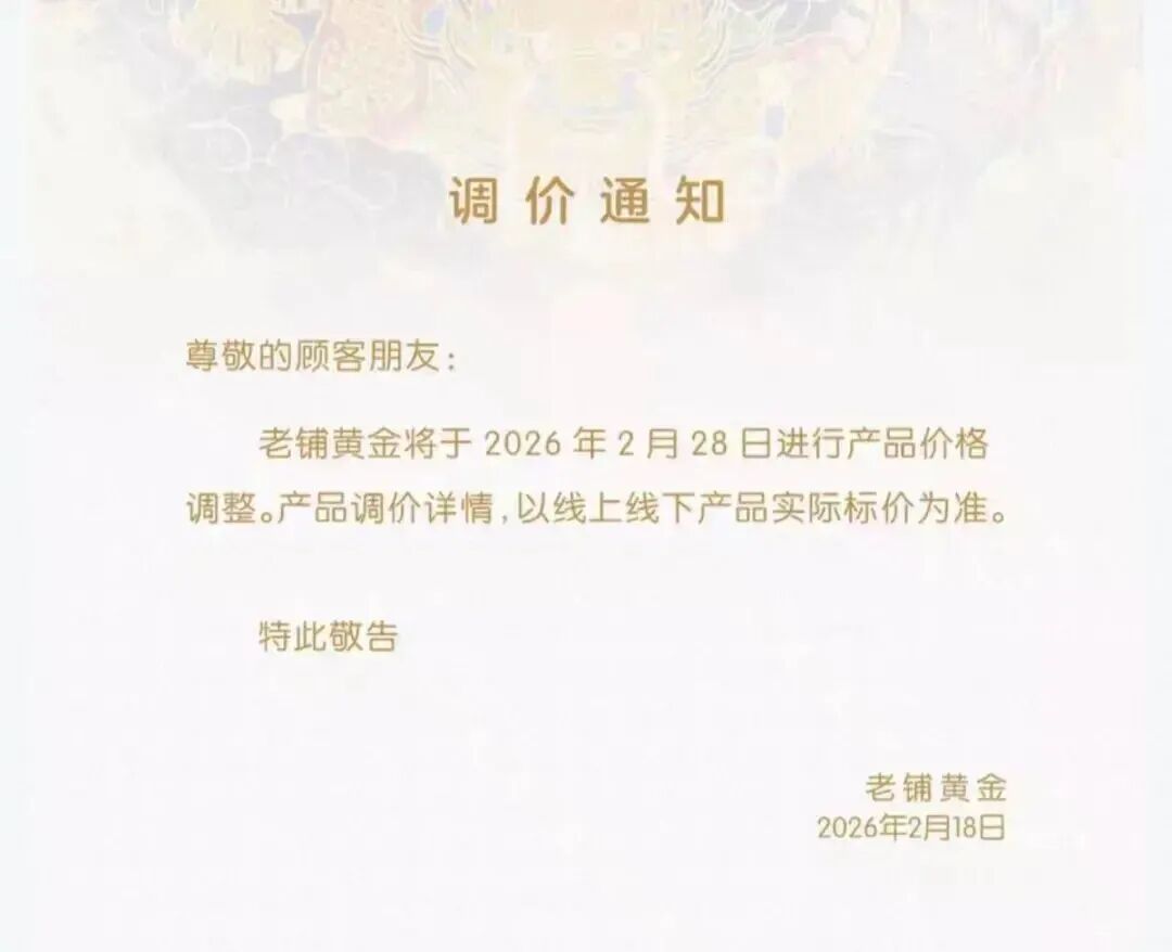 2026年2月18日,老铺黄金发布了调价通知